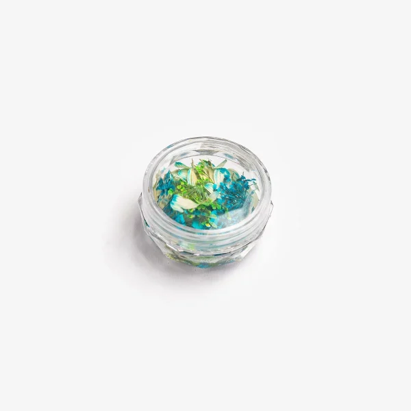 Αναδείξτετομανικιούρσαςμετα Semilac Flower Flakes Spring Meadow. Αυτά τα μοναδικά αποξηραμένα πέταλα λουλουδιών σε παστέλ πράσινες και τυρκουάζ αποχρώσεις προσδίδουν μια φρέσκια, φυσική αίσθηση στα νύχια σας.